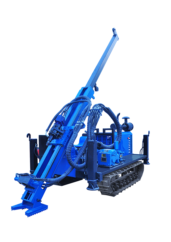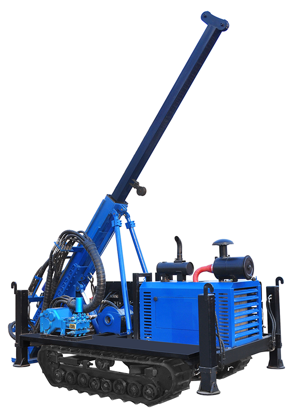 無線遙控行走,液壓桅桿自動升起,動力頭自動移機提鉆為該鉆機一大特色,其中桅桿自動升起,動力頭移機極大緩解了現(xiàn)場施工的難度,有效減小了鉆機施工人數(shù),節(jié)約成本,該鉆機采用78KW發(fā)動機,動力強勁,扭矩大,適用于各類復(fù)雜地層的金屬礦開采